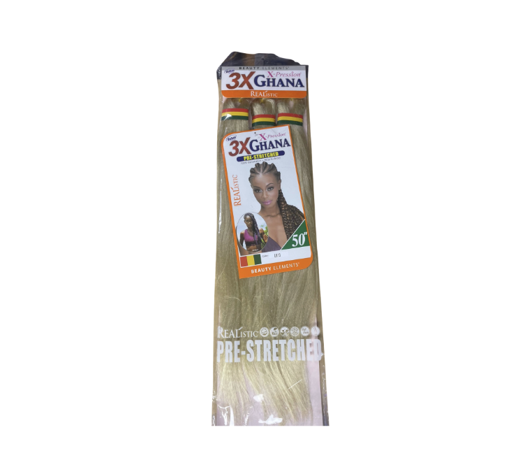 3X Ghana Realistic Braid Pre-Stretched 50″ (Color: L613) offers long, natural-looking braids with pre-stretched strands for effortless styling. Perfect for protective and stylish braided hairstyles with a smooth, realistic finish.
