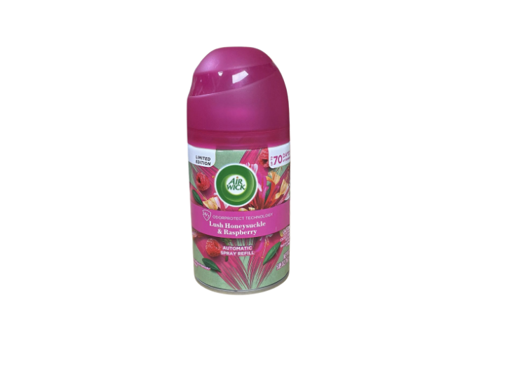 Air Wick Lush Honeysuckle & Raspberry fills your home with a fresh, sweet floral and fruity scent, creating a welcoming and relaxing atmosphere.