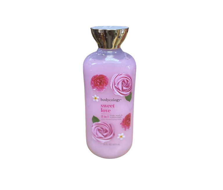 Bodycology Sweet Love 2-in-1 Body Wash & Bubble Bath gently cleanses and creates luxurious bubbles. Leaves skin soft, hydrated, and delicately fragranced for a relaxing bath experience.