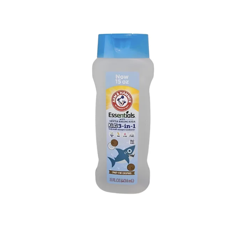 “Essentials Arm & Hammer Kids 3-in-1 Crazy For Coconuts 15 fl oz gently cleanses hair and body while providing fun, coconut-scented bath time for kids.”
