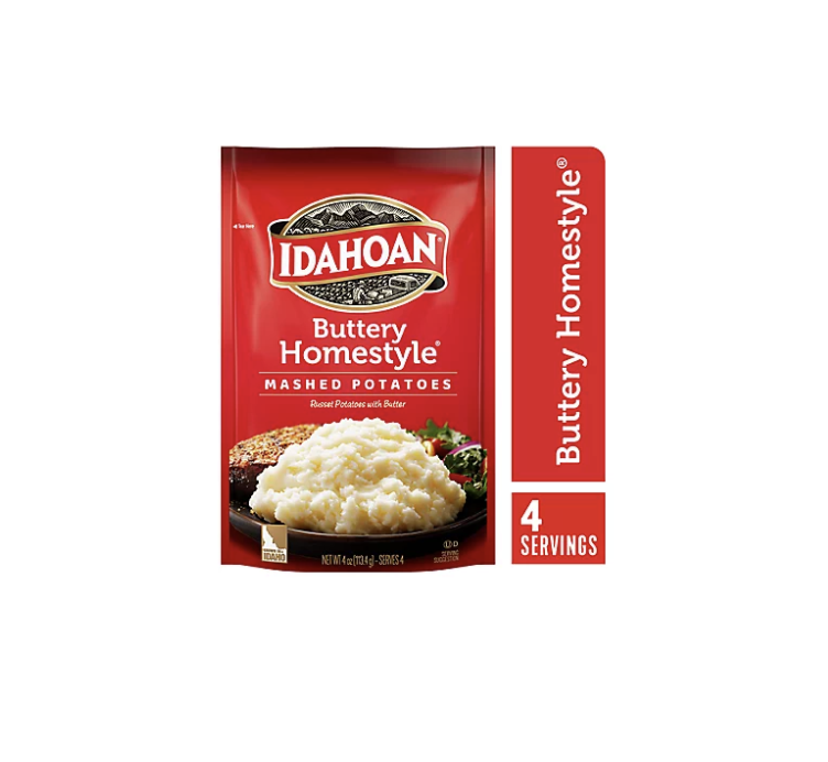 “Creamy Idahoan Buttery Homestyle Mashed Potatoes made with real Idaho potatoes, offering rich buttery flavor and quick, easy preparation.”