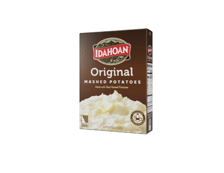 “Idahoan Gluten Free Original Mashed Potatoes made with real Idaho potatoes, delivering classic taste, smooth texture, and quick, easy preparation.”