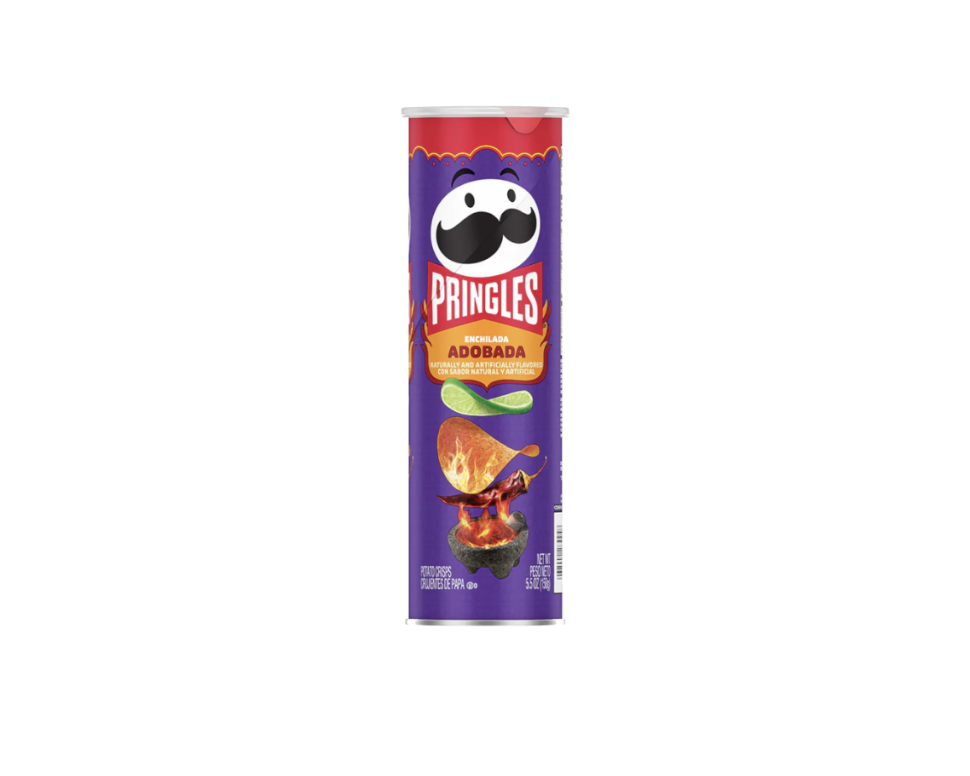 Experience bold Mexican-inspired taste with Pringles Enchilada Adobada, featuring smoky chili spices, rich tomato notes, and savory seasoning in every crispy bite.