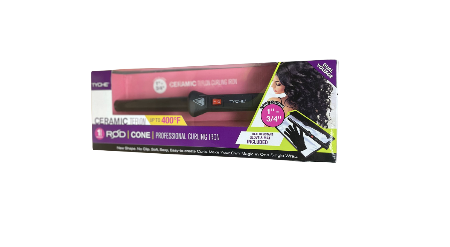 Create beautiful, long-lasting curls with the Tyche Rod Cone Professional Curling Iron, designed for precise heat control and smooth styling for salon-quality results at home.